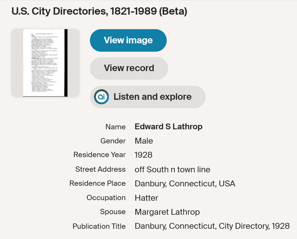 We know Thomas Keating’s family wasn’t in South Bey Limits in 1880 but Johanna Keating Naughton got married in Danbury in 1883. The first Danbury City Directory where I saw of my great grandfather Thomas Keating, father of Margaret Keating Lathrop, living in South Bey Limits was in 1890. From then, until his death in 1903, he was listed in it every year. He probably was living in South Bey Limits before 1890 but he hadn’t been discovered until then.