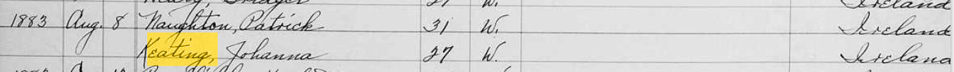 So, what about Johanna Keating Naughton and Miss Mary Keating? Their immigration year was 1880. This is unlike the rest of the family who came to the states in 1863, 1864 and 1865. It seems, Johanna and Mary headed directly to Danbury. It also seems like the rest of the family knew it. I don’t know how they coordinated all of this but they did so. They were amazing people!