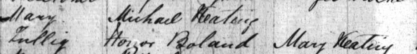 We know Margaret Keating became Keating after she married Thomas Keating but knowledge originally passed down through family records is that her married name and her maiden name were both Keating. Thomas and Margaret were first cousins. I also have a confirming record about this. This record is that Margaret Keating Keating’s sister, Johanna Keating, who would later become Johanna Naughton, was the daughter of Michael Keating and Hanor (usually an abbreviation of Hanora) Boland. Actually the “a” at the end of Hanor might have been there but has faded away over the past 161 years. I have also seen the name Honor and Honora in these records but our great grandmother, Margaret Keating Keating’s mother, as well as Bridge Crotty’s mother and Johanna Naughton’s mother was Hanora Boland.