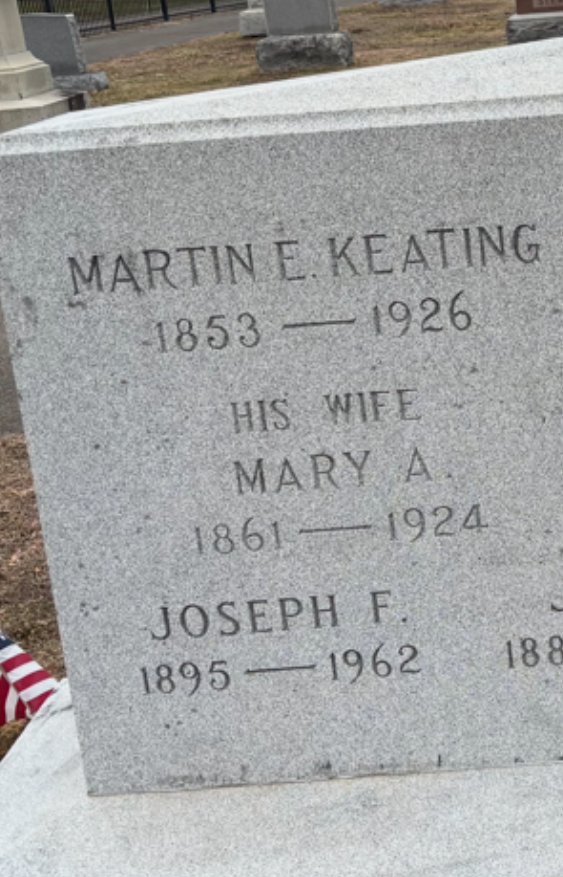 Mary Keating, the other other sister of Margaret, Bridget and Johanna is sort of hard to track down. Unfortunately, woman of the day were rarely known as Mary Keating or Catherine Jones, for instance. They mostly were known as Mrs. Thomas Keating or Mrs John Jones. So, if you were single woman you didn’t have much of an identity. Remember that women didn’t have the right to vote until 1920.