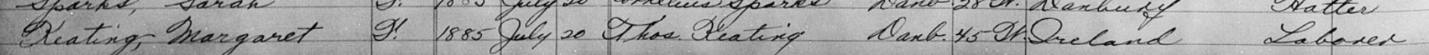 I can’t say with any certainty the birth record of the James Keating below is the James Keating referenced in the article above. However, this is only James Keating I could find in the birth records in Danbury who would have been around the same age as one of Michael J Keating’s children.