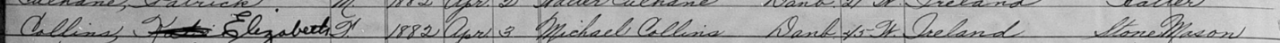 Thomas and Bridget Collins’ son Michael Collins didn’t always live in South Bey Limits. Evidence of this is shown by the fact his oldest son Andrew J was born in Brooklyn. Andrew though, lived out his life in South Bey Limits after moving in at a very young age. Also, Michael and the rest of his family were there by 1880, the same year as their neighbors, The Keatings.